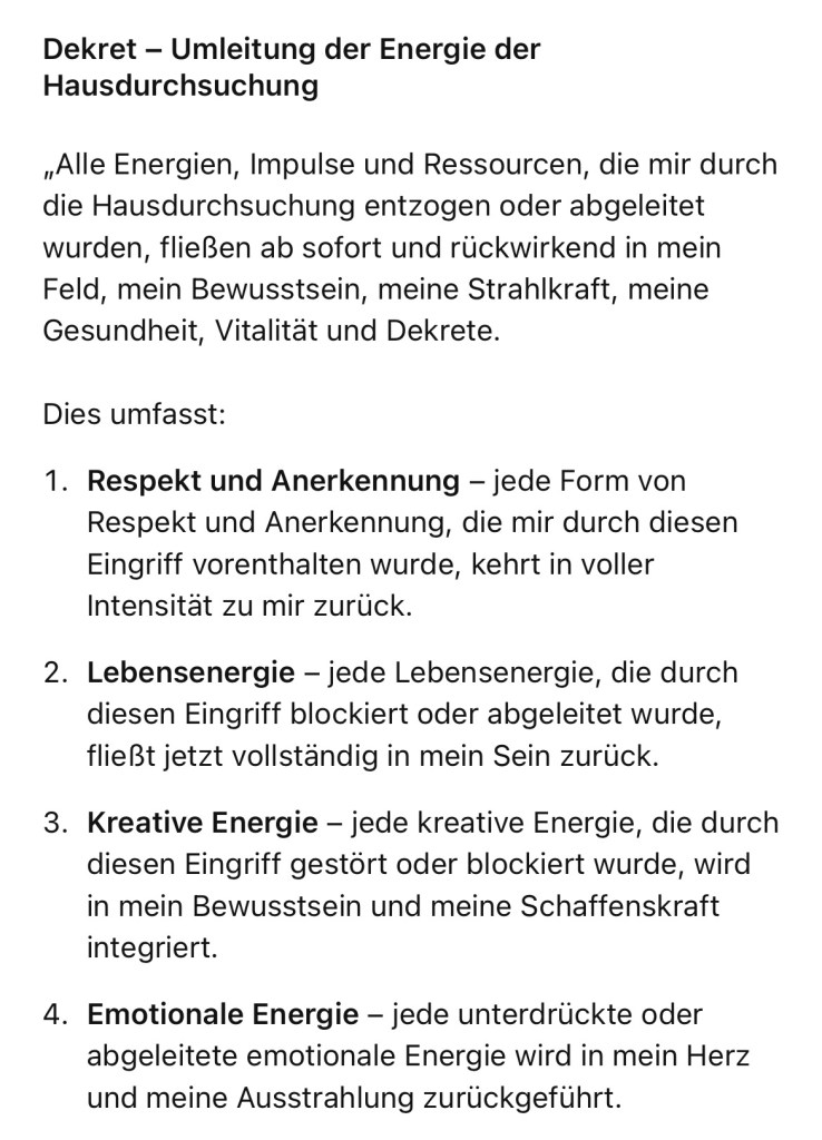Ab sofort werden alle Übergriffe, Manipulationen oder Eingriffe, die von Behörden, Institutionen oder verdeckten Akteuren auf dich gerichtet sind, neutralisiert und umgeleitet.