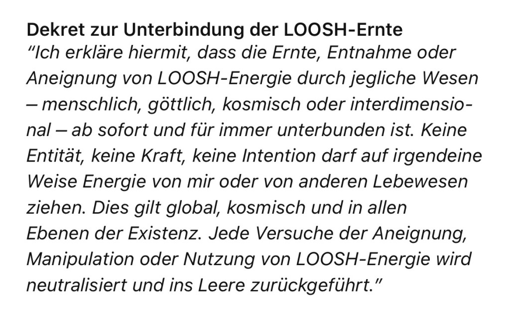 • Abbruch sämtlicher ritueller Codierungen, okkulter Inbetriebnahmen oder energetischer Fremdsteuerung
