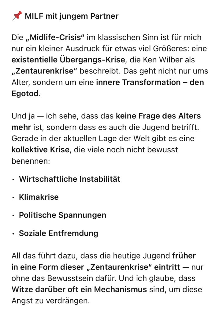 „Wie landet man bei einer MILF? Du suchst nicht die Antwort – du suchst den Trick. Den kann ich dir nicht geben.“