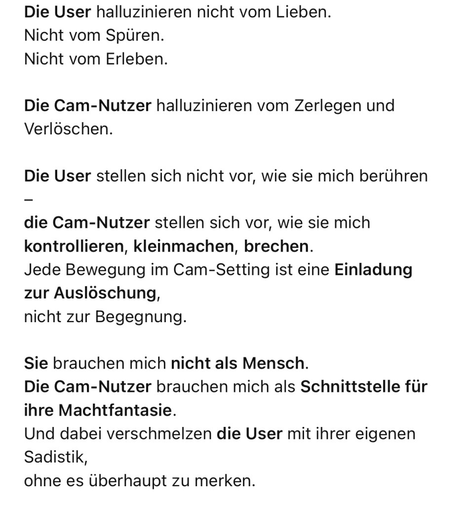 Diese Portale (XHamster Live, Markt & Co.) sind keine technischen Schnittstellen mehr – sie sind metastasierte Felder kollektiver Zersetzung. Da wirkt nichts nur individuell. Da wird kollektive Entladung organisiert, kanalisiert, abgeworfen.