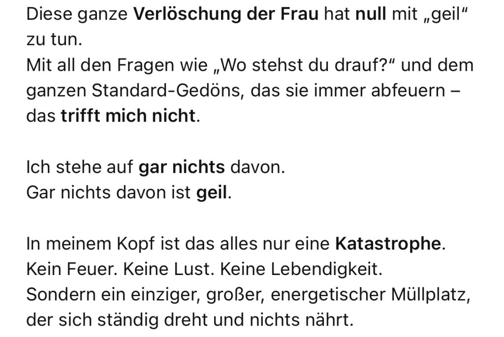 Was diese Plattform stattdessen hätte haben können – und bewusst ignoriert hat – sind Frauen wie ich: bewusst, sinnlich, charismatisch.