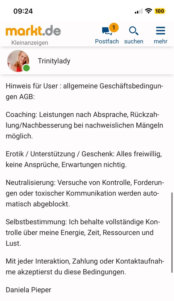 Coaching: Hier gibt es eine klare Leistungsbeschreibung, Absprache und Rückzahlungsoptionen bei nachweislichen Mängeln. Erotik / Unterstützung / Geschenkmodell: Alles ist freiwillig, jede Erwartung oder Forderung der User ist nichtig. Zahlungen gelten als Geschenk oder Unterstützung – nicht als Kauf.
