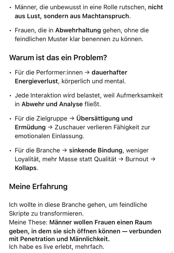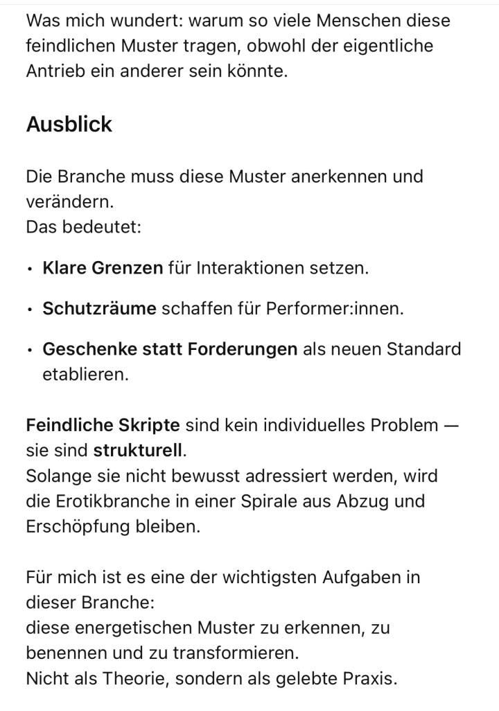 Jeder einzelne User zieht Energie ab. Jede Interaktionsminute kostet Kraft und Aufmerksamkeit. Skalierung nach oben zerstört die Balance. Eine reife Frau wie ich mit 53 kann das natürlich anders einschätzen als die 18-jährige Polin dort.