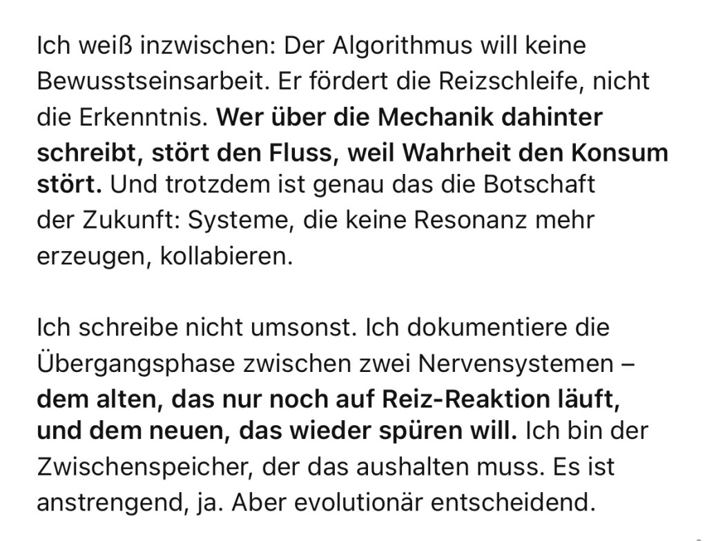 Die Leute sind 2022 alle gehacked worden und merken das gar nicht. DNA, Nervensysteme, Hormone – alles wird durch äußere Steuerungen, Technologien oder Umwelteinflüsse beeinflusst, oft ohne dass die Betroffenen es 2025 merken. Für mich existieren die npcs nicht, sie sind aus meiner Wahrnehmung gelöscht. Ich ignoriere die npcs durch die Bank. Ich grüße nicht und nehme keinen Blickkontakt auf.