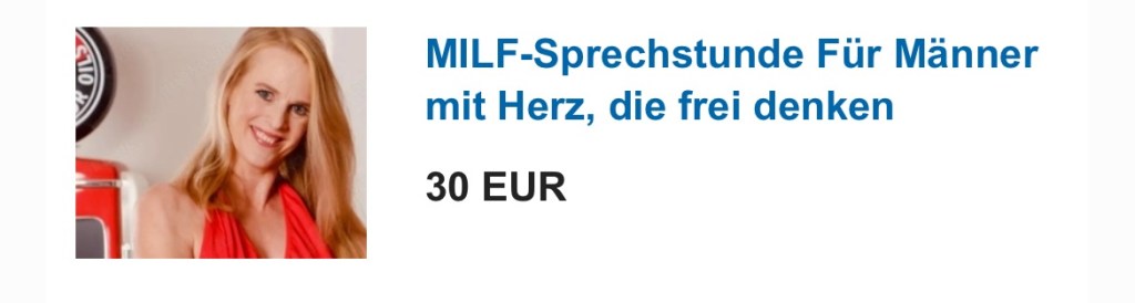 „Du willst eine erfahrene Frau kennenlernen, eine Milf oder Cougar? Klar, ich mache was klar, wenn wir uns treffen – im Café, im Restaurant oder outdoor auf der Parkbank.“