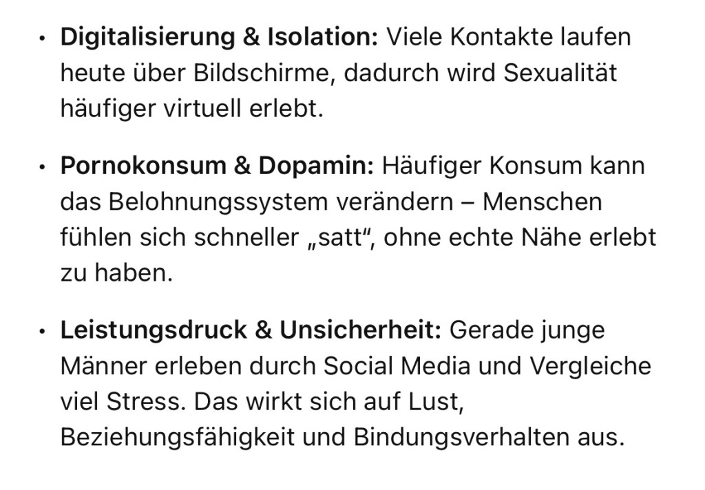 Das erzeugt oft Frust bei jungen Kerls, weil sie nicht wissen, wie sie in diesem neuen Feld überhaupt Lust und Verbindung schaffen sollen.